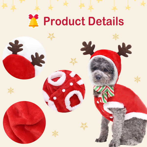 Aimondow Pet Christmas Clothes Xmas Holiday Warm Dog Hoodies Vintage Coat New Year Soft Cosplay Puppy Sweaters for Small Dogs and Cats